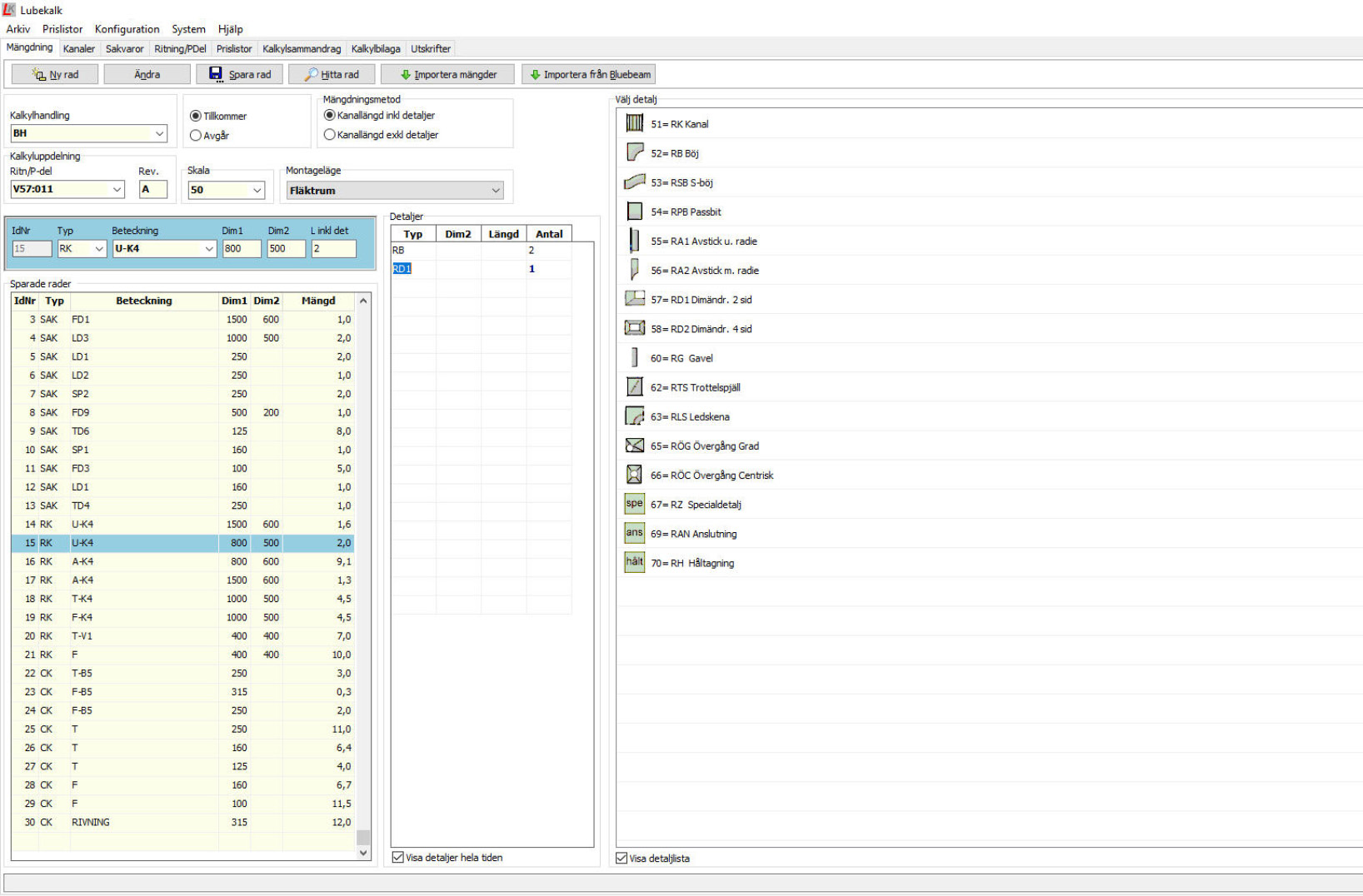 Minimera felmätningar och spara tid genom att mängda digitalt direkt från PDF-ritning med Bluebeam Revu och den anpassade profilen för Lubekalk, eller använd vår speciellt framtagna mätpenna direkt på utskrivna ritningar. Bland annat kanaler och detaljer, sakvaror och utvändig isolering kan mängdas med sådan noggrannhet att kalkylen kan användas vid materialbeställning.