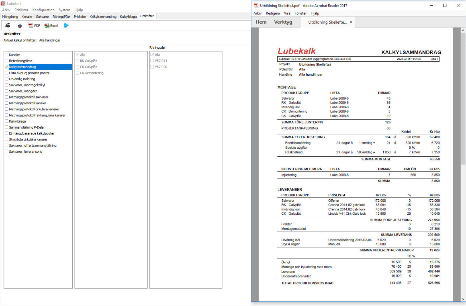 Kalkylsammandrag